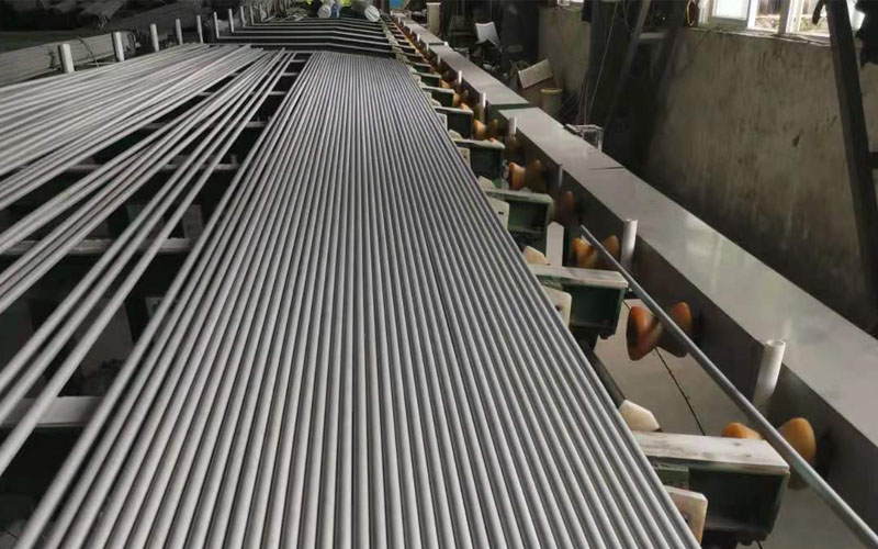 生產(chǎn)線配備了冷拔機(jī)、冷軋機(jī)、天然氣高溫固溶處理爐、密閉式酸洗設(shè)備、矯直機(jī)、材料試驗(yàn)機(jī)、渦流探傷儀、超聲探傷儀、理化室CS分析儀等各種生產(chǎn)及檢測設(shè)備,從產(chǎn)品原料到生產(chǎn)每道工藝都嚴(yán)格檢測、有效控制。
